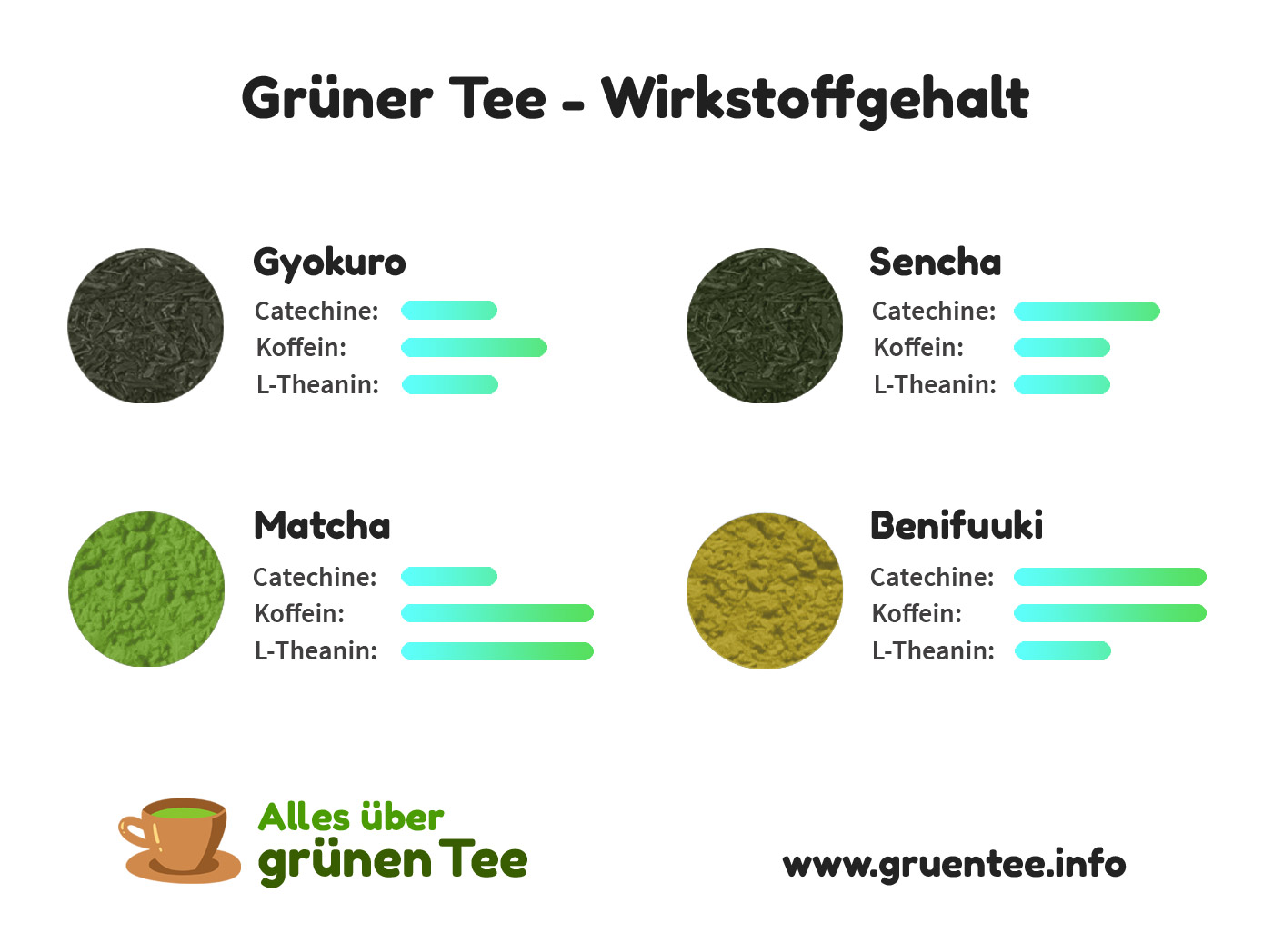 Auf dieser Seite erfährst du, welche positiven Effekte durch Studien belegt sind. Koffeein, Catechine und Theanin: Wir starten mit den wichtigsten Inhaltsstoffen.