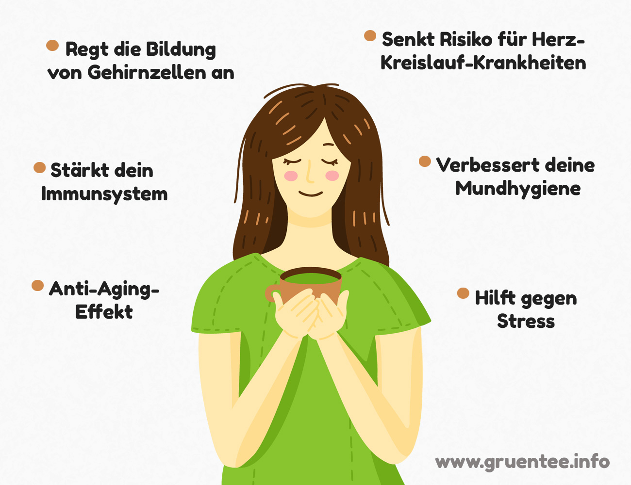 Grüntee ist vollgepackt mit Antioxidantien, Vitaminen und Mineralstoffen, die dir helfen, gesund zu bleiben und dein Wohlbefinden zu verbessern: